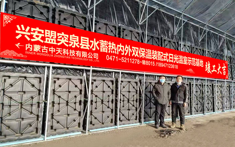 水蓄熱內(nèi)外雙保溫裝配式日光溫室是由內(nèi)蒙古農(nóng)業(yè)大學與內(nèi)蒙古中天科技有限公司聯(lián)合研發(fā)完成,并已在東北、西北、華北等地區(qū)進行了大面積的示范推廣。該溫室集成了10多項國家專利技術(shù),實現(xiàn)了北方寒冷地區(qū)冬季不加熱正常生產(chǎn)果菜類蔬菜,對于推動設(shè)施蔬菜產(chǎn)業(yè)發(fā)展及帶動當?shù)剞r(nóng)民增收致富有著非常重要的意義,該溫室具備以下特點: