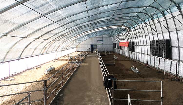 5.新型畜牧棚舍內(nèi)部可以通過(guò)開合內(nèi)保溫被進(jìn)行遮陰和防露。